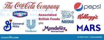 Nestlé, 1866 in der Schweiz gegründet, ist heute der weltweit größte Nahrungsmittelkonzern, dessen Produktpalette von Babynahrung über Kaffee bis hin zu Tiernahrung reicht. Unilever entstand 1929 durch die Fusion eines niederländischen Margarineherstellers und eines britischen Seifenproduzenten und ist heute ein globaler Riese im Konsumgüterbereich. Coca-Cola, 1886 in Atlanta gegründet, ist der führende Getränkehersteller weltweit. PepsiCo, gegründet 1965, ist nicht nur Coca-Colas größter Konkurrent im Getränkemarkt, sondern auch im Snack-Segment ein bedeutender Akteur. Mondelez wurde 2012 nach der Aufspaltung von Kraft Foods gegründet und konzentriert sich auf Snacks und Süßwaren.